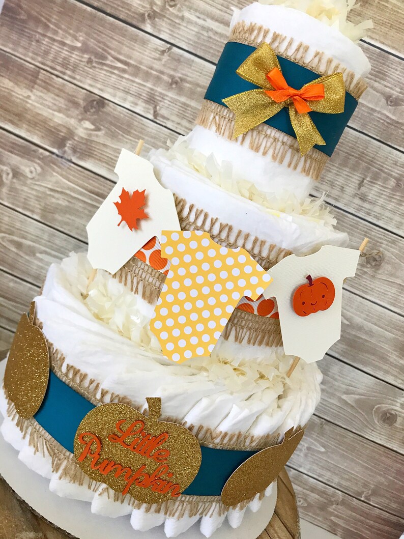 Gateau De Couches Bebe Douche En Burlao Sarcelle Et Dore Etsy