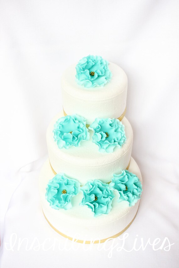 Gateau De Mariage Sarcelle Topper 6pcs Fleurs Comestibles Etsy