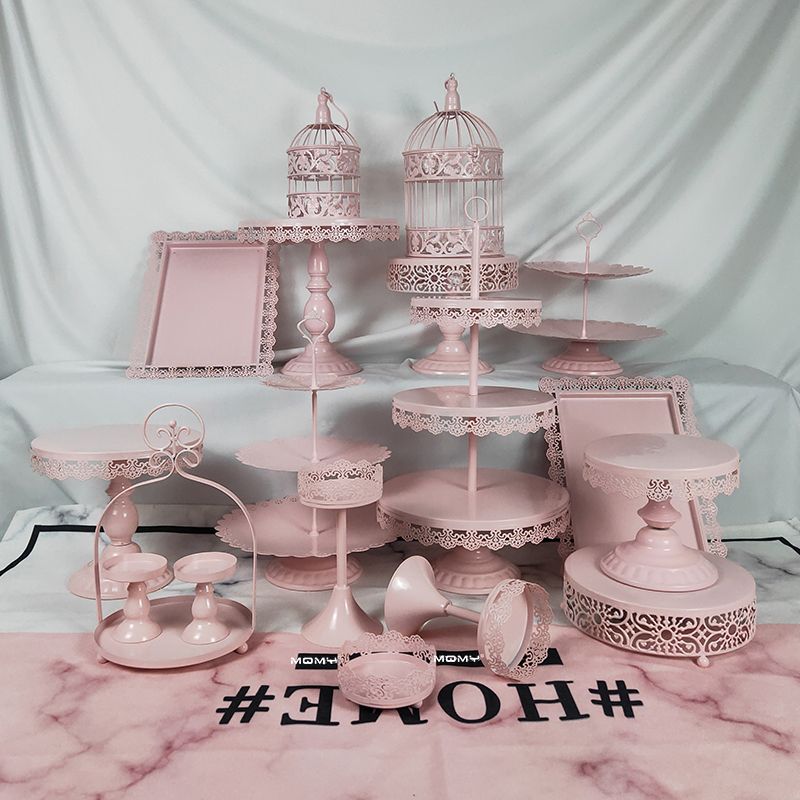 Acheter Gros Rose Fer Metal Cake Stand Set 14 Pieces De Mariage