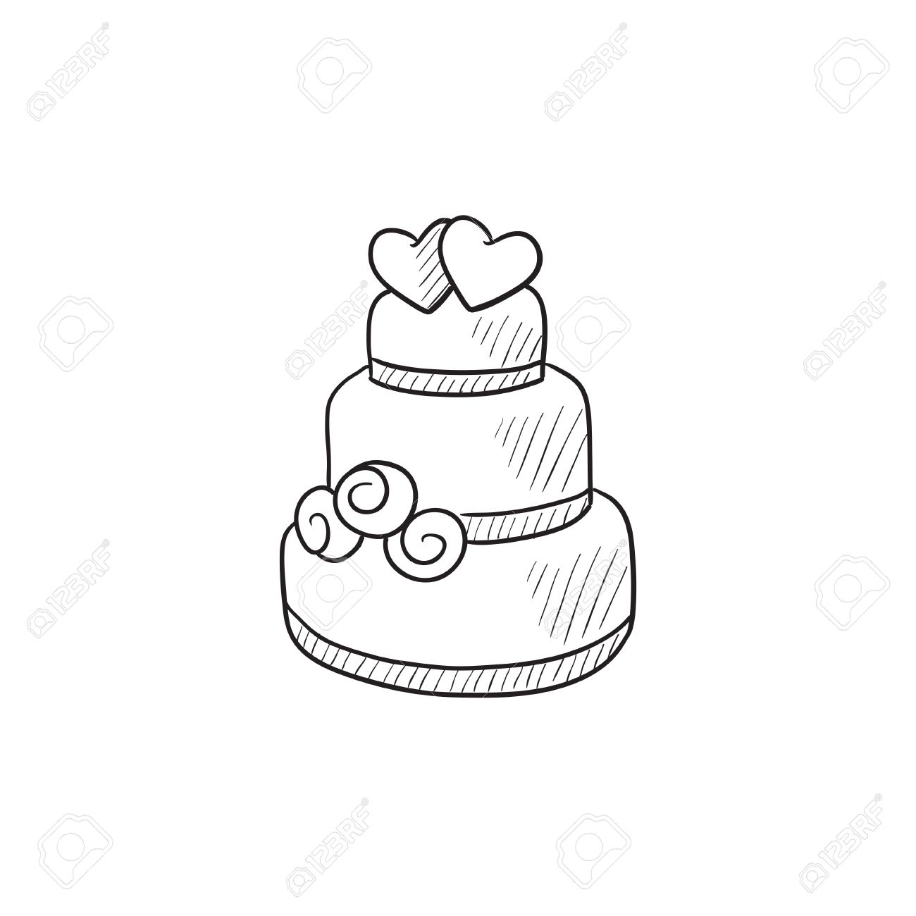 Gateau De Mariage Vecteur Croquis Icone Isole Sur Fond Hand Drawn