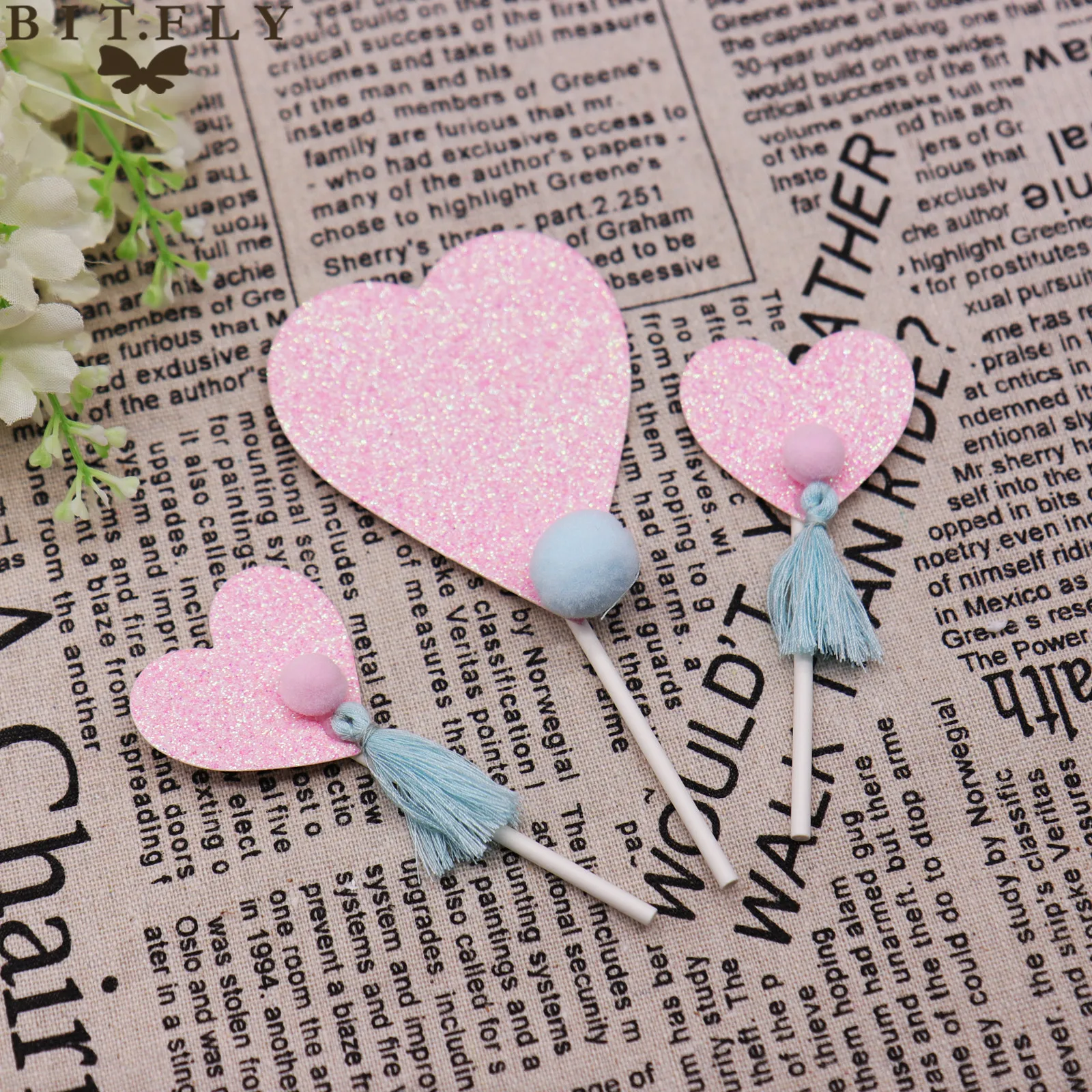 Bit Fly 3 Pieces Joli Coeur Cupcake Toppers Anniversaire Gateaux