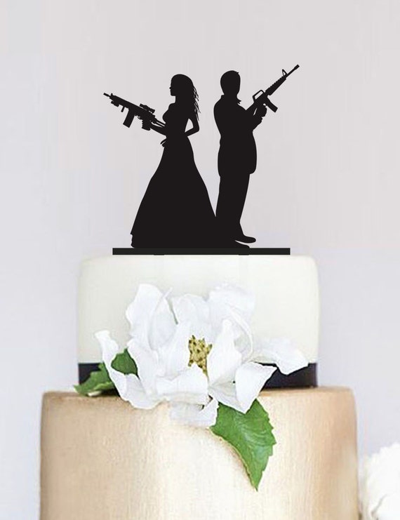 Pistolet Mariage Topper Couple Armes Silhouette De Gateau Etsy