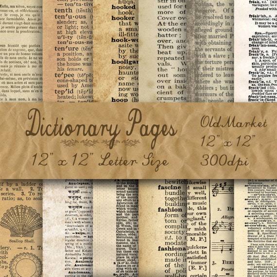 Dictionnaire Pages Papier Numerique Vieux Papier Textures Etsy