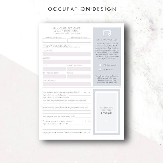 Nail Manicure Pedicure Artificial Nails Client Information Etsy