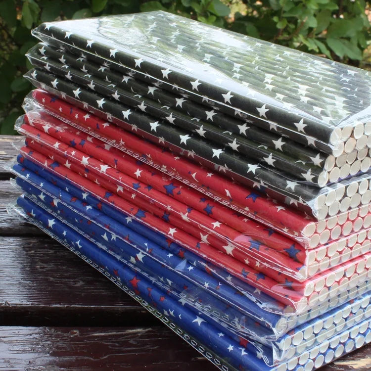 500 X Bleu Rouge Noir Etoiles Papier Pailles Anniversaire Fete De