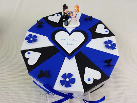 Cadeau De Mariage Gateau Gateau Bleu Blanc Noir Argent Etsy