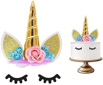 Licorne Cake Topper Fleurs A La Main Licorne Corne Oreilles Joyeux