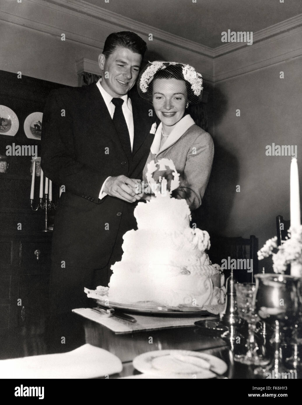 Jeunes Maries Ronald Et Nancy Reagan A Reduit Le Gateau Au Cours