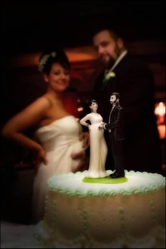 Nous brisons les traditions les plus cheres des gateaux de mariage un etage a la fois. La figurine represente les maries. Le choix de la figurine.