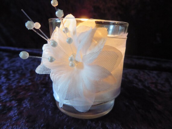 Bougie Votive Faveur De Mariage Avec Fleurs En Soie Blanche Et