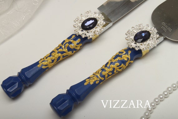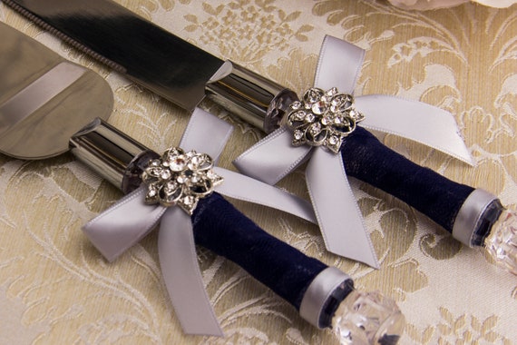 Couteau A Gateau De Mariage Ensemble Bleu Bleu Marine De Etsy
