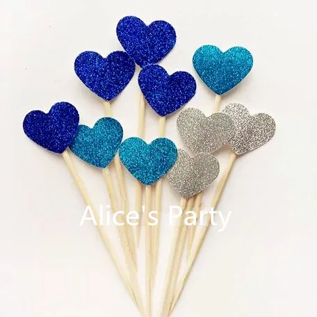 50 Pcs Chaude Magnifique Scintillant Bleu Royal Argent Coeur
