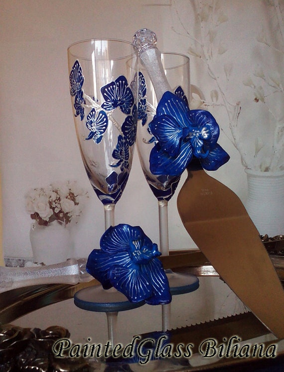 Bleu Royal Lunettes De Mariage Orchidee Portion De Gateau De Etsy