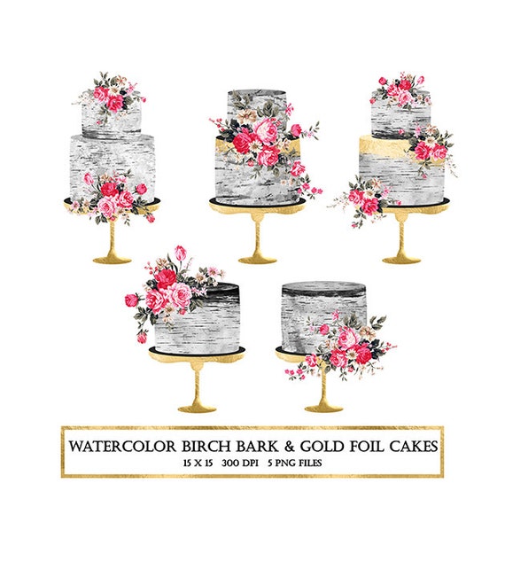 Aquarelle Gateau Clipart Bouleau Gateau Clipart Feuille Dor Etsy