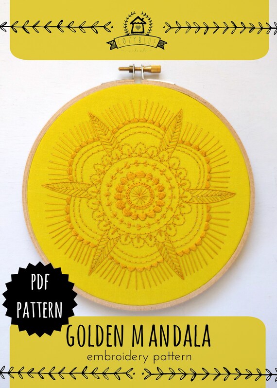 Golden Mandala Pdf Embroidery Pattern Embroidery Hoop Art Etsy