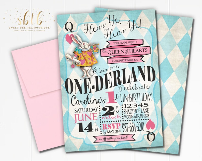 Boys Girls Alice In Wonderland First Birthday Invitation Etsy