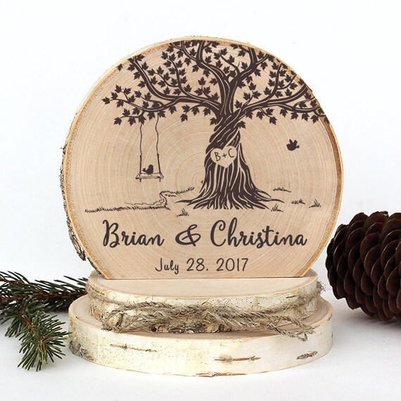 Cake Topper Mariage Personnalise En Bois Prenoms Arbre Et Oiseau
