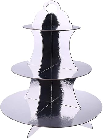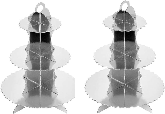 Lot De 2 Presentoirs Lalia A 3 Etages En Carton Solide Argente