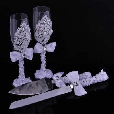 Toasting Flutes Wedding Cake Serving Set Lace Flower Set