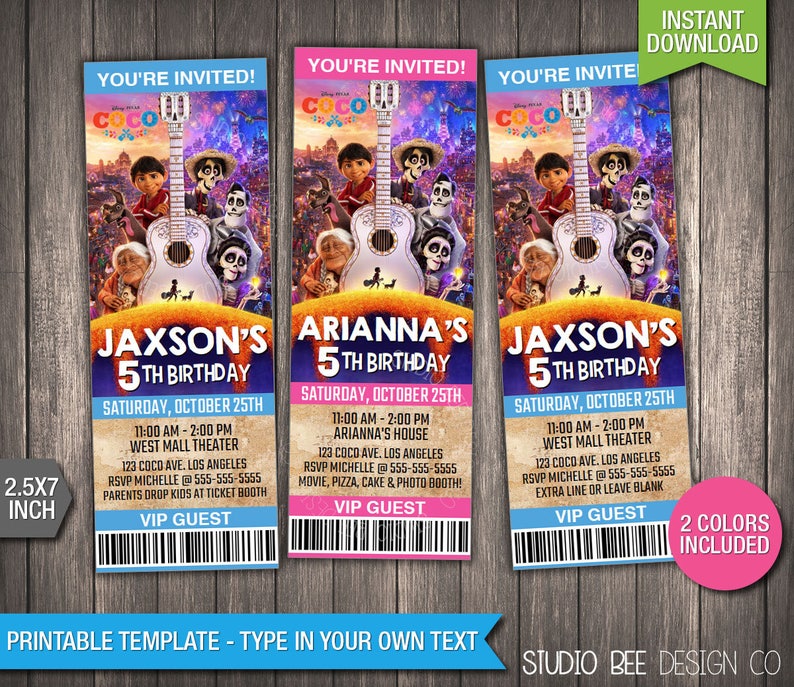 Coco Ticket Invitation Instant Download Printable Disney Etsy
