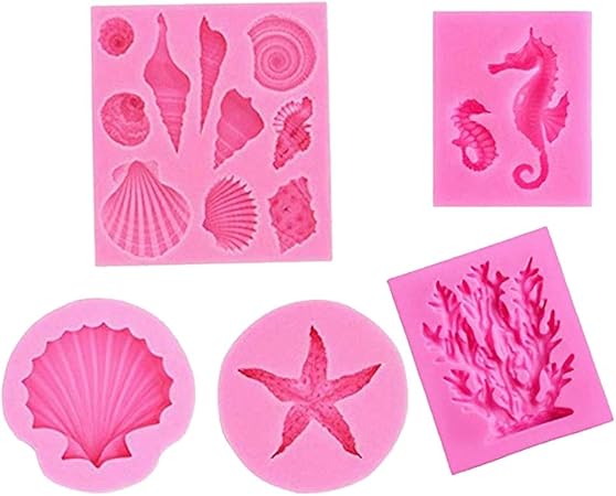 12shage 5pcs Seashell Silicone Fondant Moule Big Sea Shells
