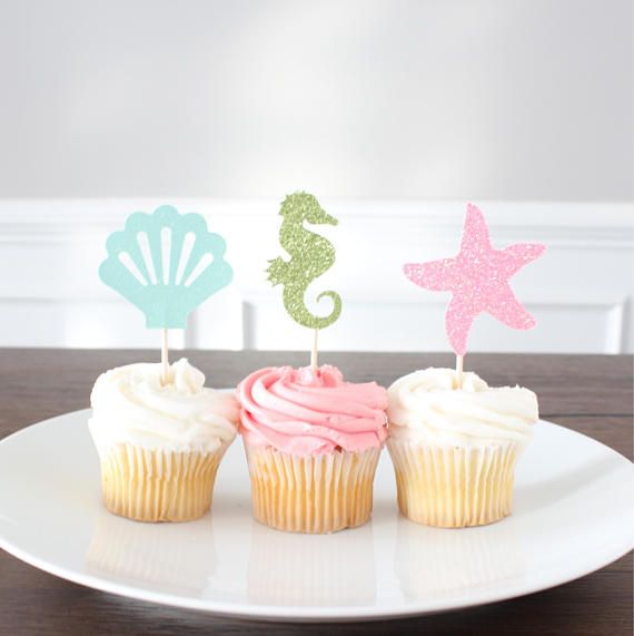 Mermaid Fondant Edible Shells Gold Cake Cupcake Topper Beach