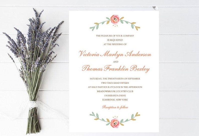 Rose Floral De Mariage Invitation Invitation De Mariage Rose Etsy
