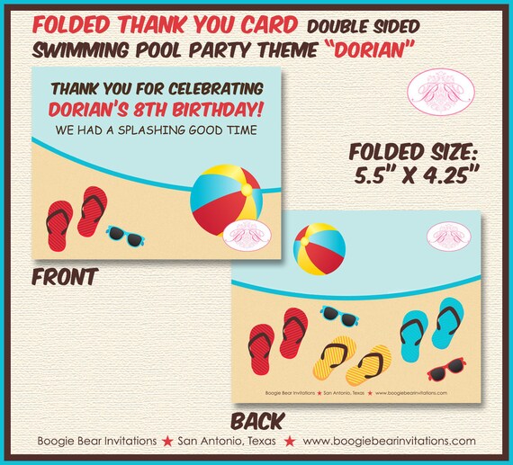 Swimming Pool Birthday Party Thank You Card Boy Red Blue 1st Etsy
