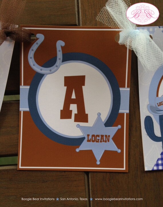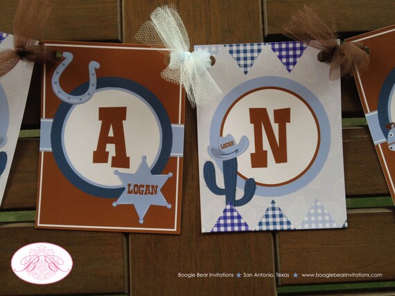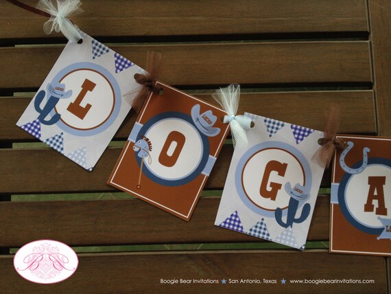 Wild West Cowboy Birthday Party Banner Hat Blue Lasso Boy Name Etsy