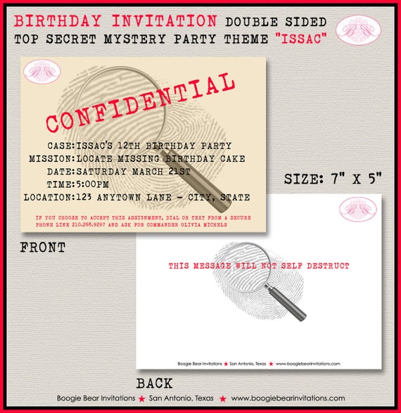 Mystery Clue Birthday Party Invitation Top Secret Girl Boy 1st Etsy